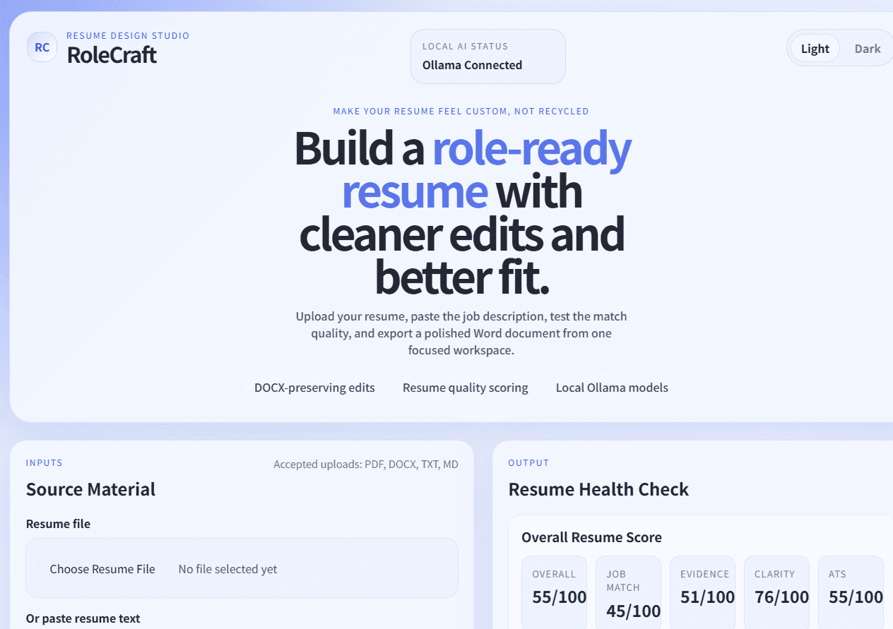 (보너스) RoleCraft – Local PC에서 실행 가능한 Ollama 이용 이력서 분석 및 작성 도구